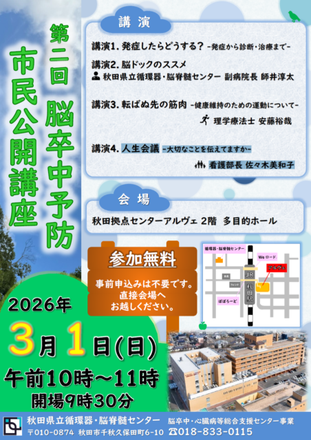 脳卒中、心臓病に関する公開講座が開催されます。