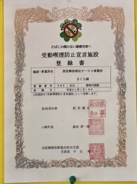 火災の発生危惧から受動喫煙対策に/禁煙啓発資材を活用して指定障害福祉サービス事業所 さくら園(八峰町)