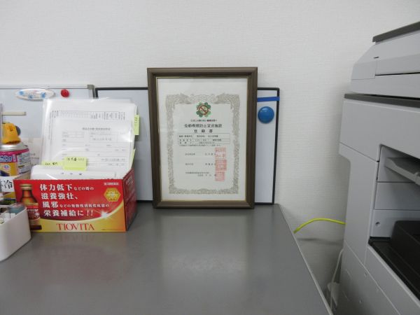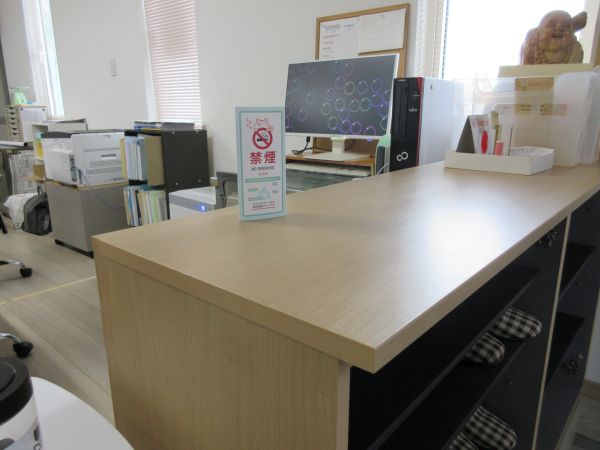 県の受動喫煙防止宣言施設には平成30年9月に屋内禁煙施設として登録を行い、屋内には県及び協会けんぽが作成した禁煙ポスターやステッカーを掲示し、社員及び取引先等の外部来訪者に対して禁煙のアピールとコンセンサスを図っている。社員からは会社屋内にたばこの臭いがなく、屋内の壁が綺麗なままで職場環境が良いと好評価とのこと。